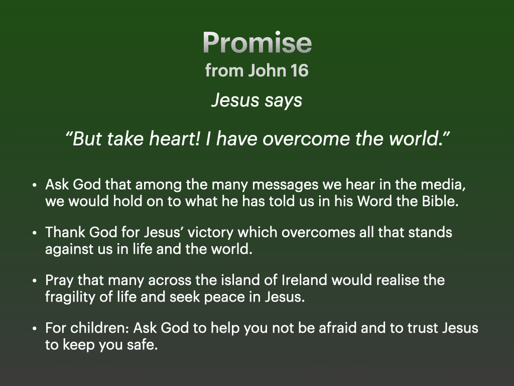 I ask you to share this Call to Prayer so that across Ireland we are united in prayer in that hour.