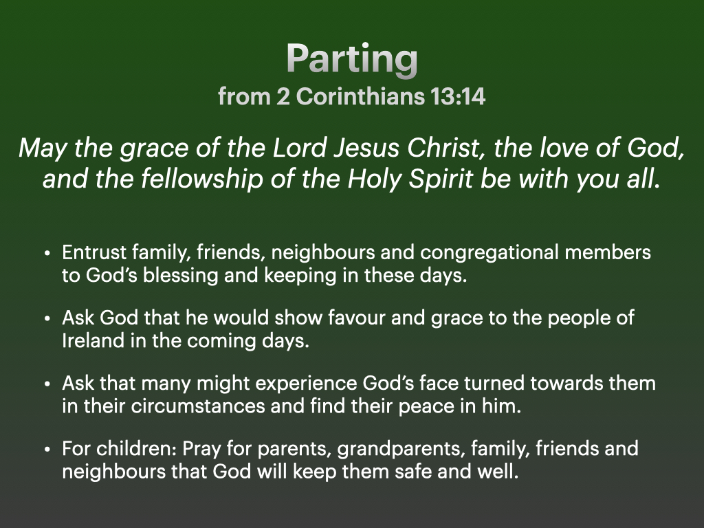 With the leaders of the main churches in Ireland, I have called for a National Day of Prayer throughout Ireland centred on Palm Sunday between 3-4pm. Materials will be provided here on the PCI website, so get together with your family in prayer, and join me in asking God to deliver our land and our world.