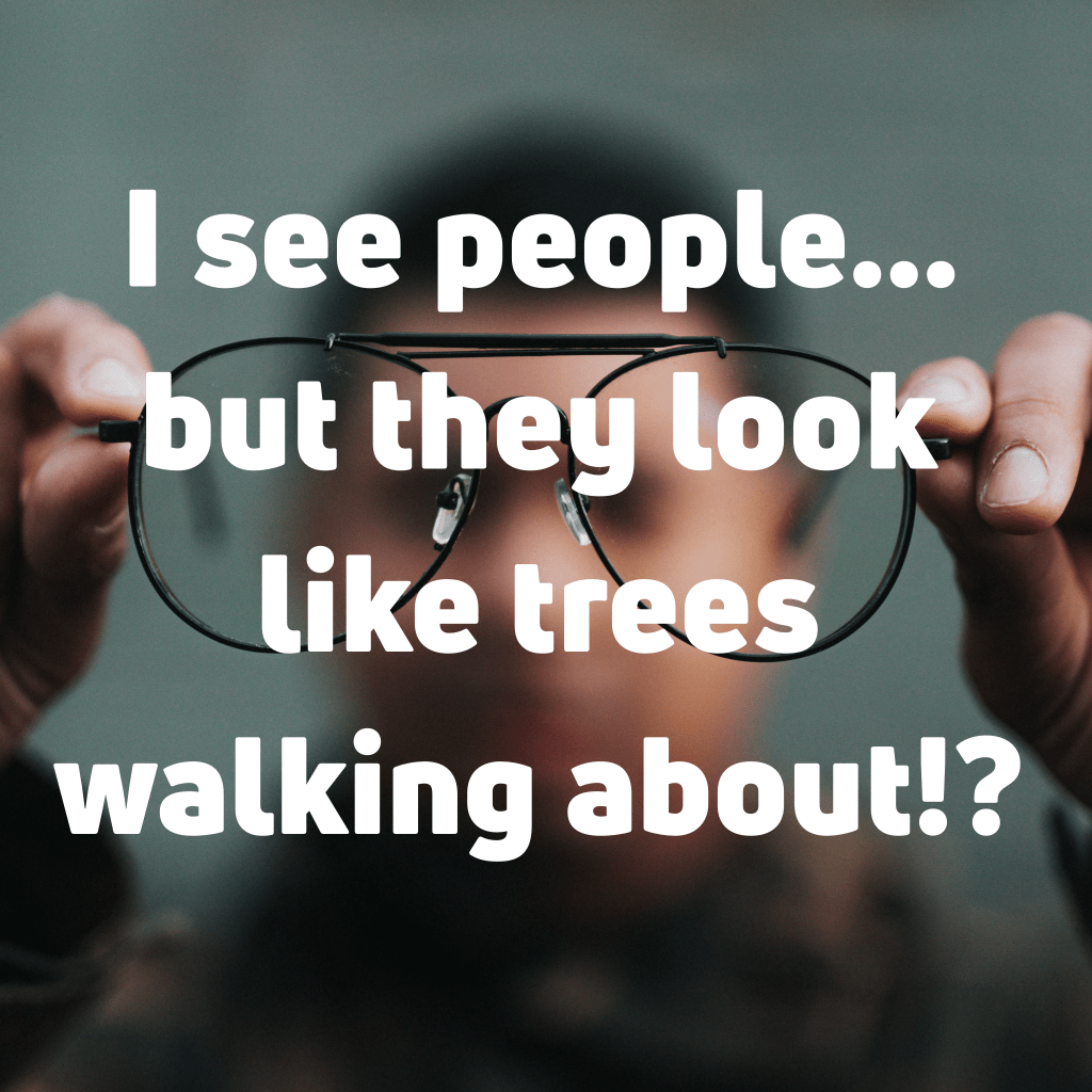 After arriving in Bethsaida a blind man is brought to Jesus. The blind man’s friends beg Jesus to heal him. Jesus leads the man out of the village to where it is quiet. Bizarrely, Jesus spits on the man’s eyes and then asks, “Do you see anything?” By asking the question Jesus is anticipating the man’s sight has not been fully healed. The man says that he can see but it’s not quite right. He sees people but they look like trees. Jesus then touches the man’s eyes and he is able to see clearly.
